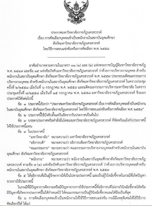 ประกาศ รับสมัครและคุณสมบัติ บุคคลเพื่อเข้าสอบแข่งขัน เป็นบุคลากรมหาวิทยาลัยราชภัฏนครสวรรค์