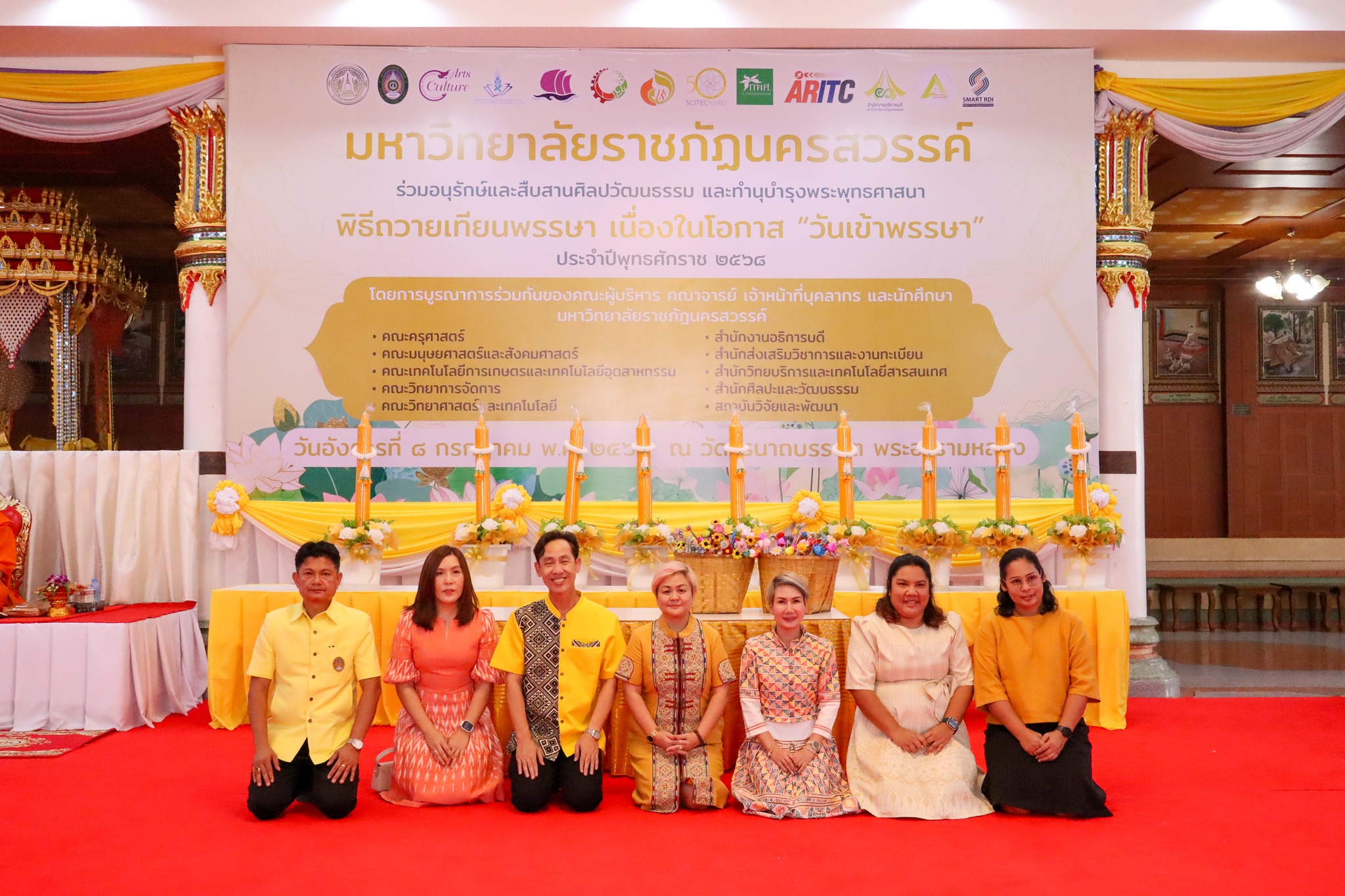 รองอธิการบดีฝ่ายกิจการสภามหาวิทยาลัยและสื่อสารองค์กร พร้อมด้วยคณะผู้บริหาร คณาจารย์ บุคลากร และตัวแทนนักศึกษามหาวิทยาลัยราชภัฏนครสวรรค์ ร่วมพิธีถวายเทียนพรรษา เนื่องในโอกาส “วันเข้าพรรษา” ประจำปีพุทธศักราช 2568 ณ วัดวรนาถบรรพต พระอารามหลวง (วัดกบ) โดยได้รับความเมตตาจากพระราชรัตนเวที เจ้าอาวาสวัดวรนาถบรรพต เป็นประธานฝ่ายสงฆ์