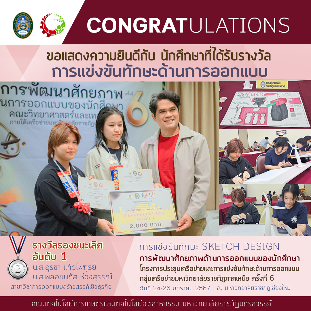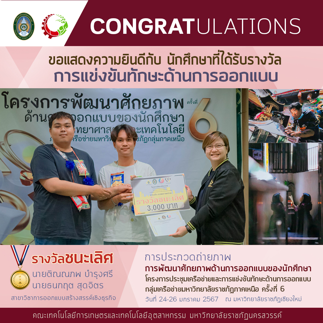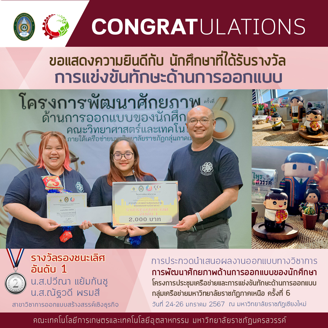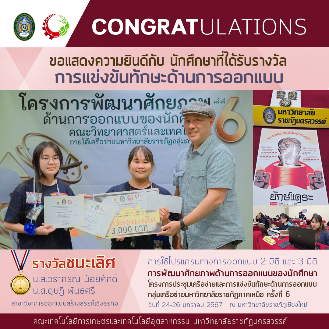ขอแสดงความยินดี กับ นักศึกษาสาขาวิชาการออกแบบสร้างสรรค์เชิงธุรกิจ ที่ได้รับรางวัลในการแข่งขันทักษะด้านการออกแบบ