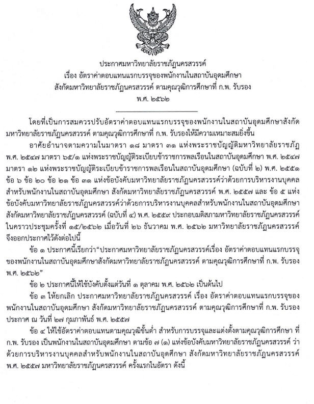 ประกาศ การกำหนดบัญชีอัตราเงินเดือนขั้นต้นของลูกจ้างชั่วคราว สังกัดมหาวิทยาลัยราชภัฏนครสวรรค์ พ.ศ. 2562