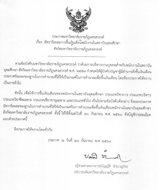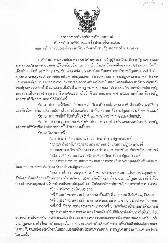 วิธีการเลื่อนขั้นเงินเดือน บุคลากรมหาวิทยาลัยราชภัฏนครสวรรค์